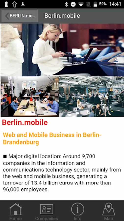 In total more than 9,700 companies with over 96,000 employees are involved in information and communication technology in the capital region. Many of them focus on web and mobile business. Strengths can be found in, but are by no means limited to, the areas of FinTech, Ad- Tech, e-Commerce, games, mobility and In- dustrial Internet.