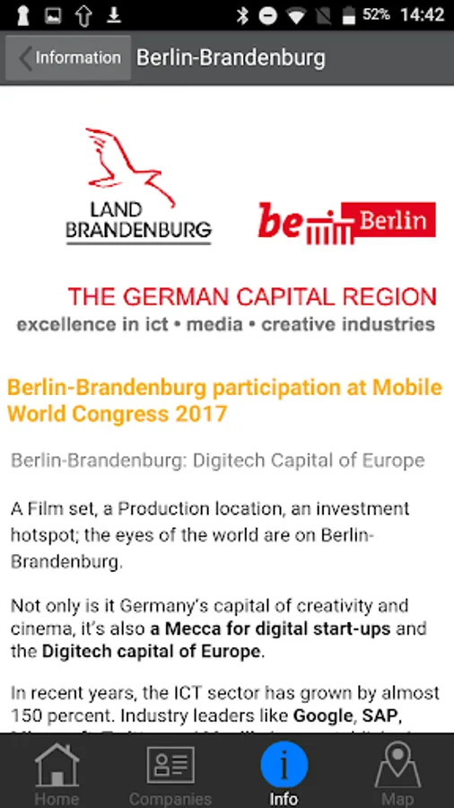 Web and Mobile Business in the Capital Region Berlin-Brandenburg at Mobile World Congress 2017.