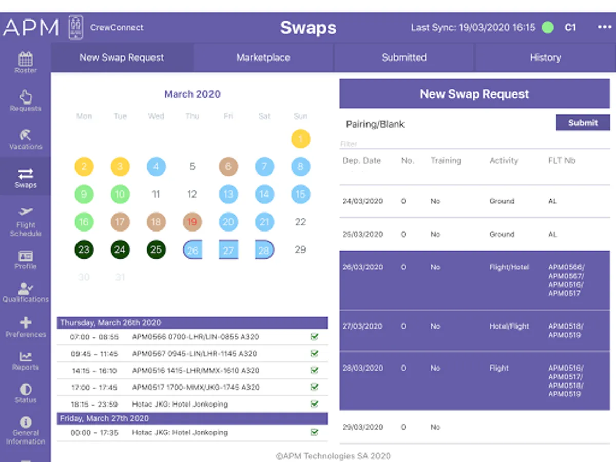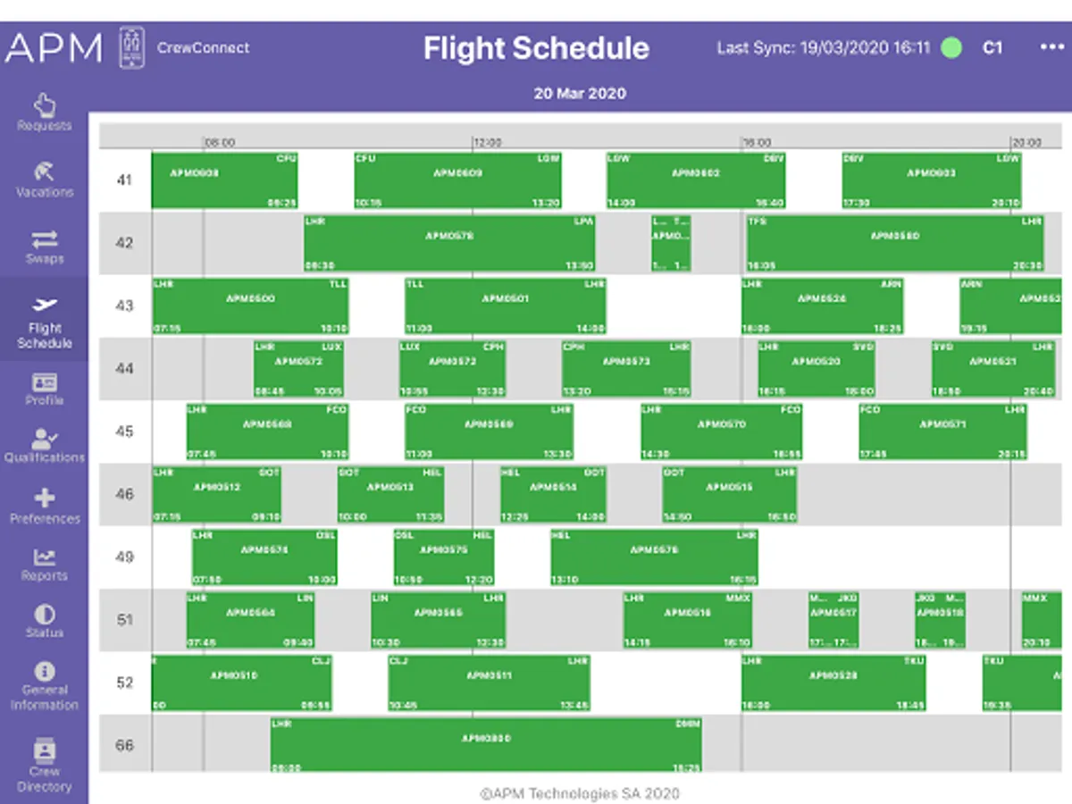 The APM CrewConnect app has been designed by aviation experts for Airline Crew needs.