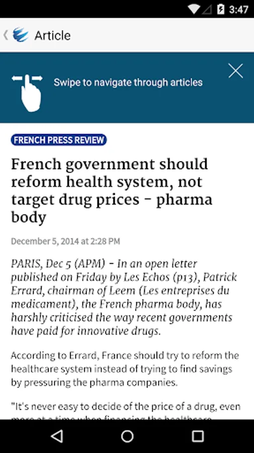 APM Health Europe App marks another step in the evolution of our daily newswire feed.