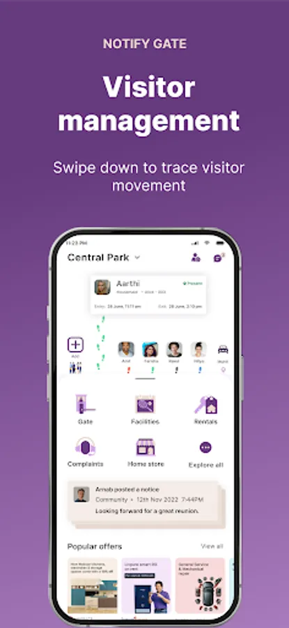 • Approve/Pre-approve visitors or guests at the apartment gate.