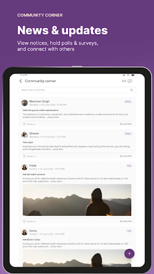 • Access Apartment Interest Groups to share interesting events, celebrations,