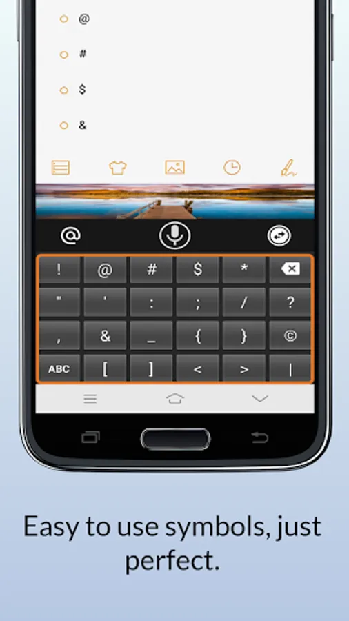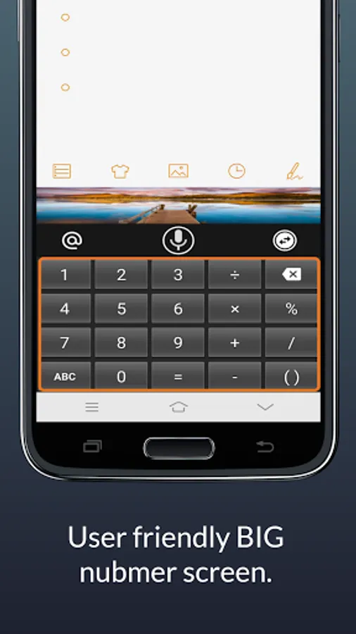 for example, number mode is like calculator of android phones,and symbols are only symbols in big size.