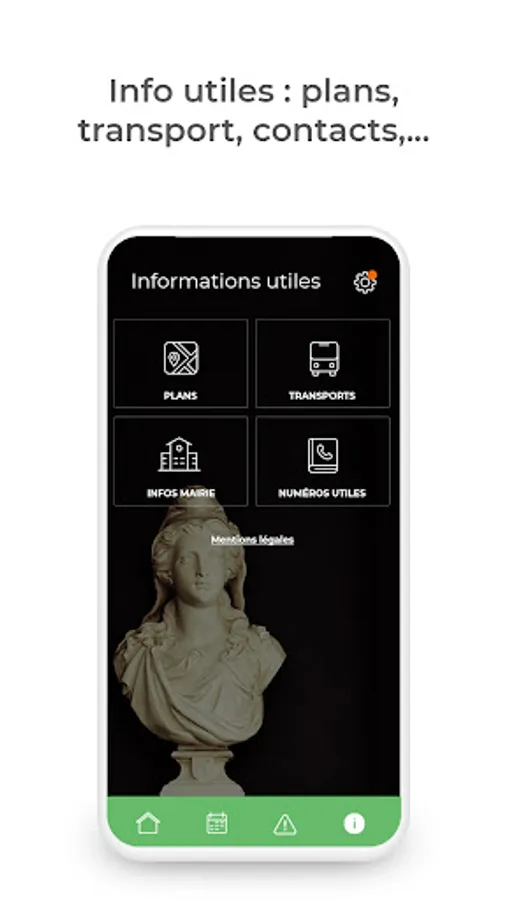 It will give you one-click access to the events calendar as well as all the essential information about your municipality: map, transport and useful numbers.