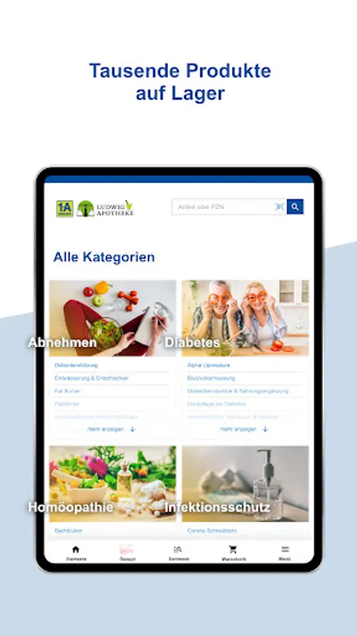 We offer you our entire range via the app. We will order products that are not immediately available for you and usually have them ready for collection by the next working day. We would be happy to deliver your order directly to your home by courier service.