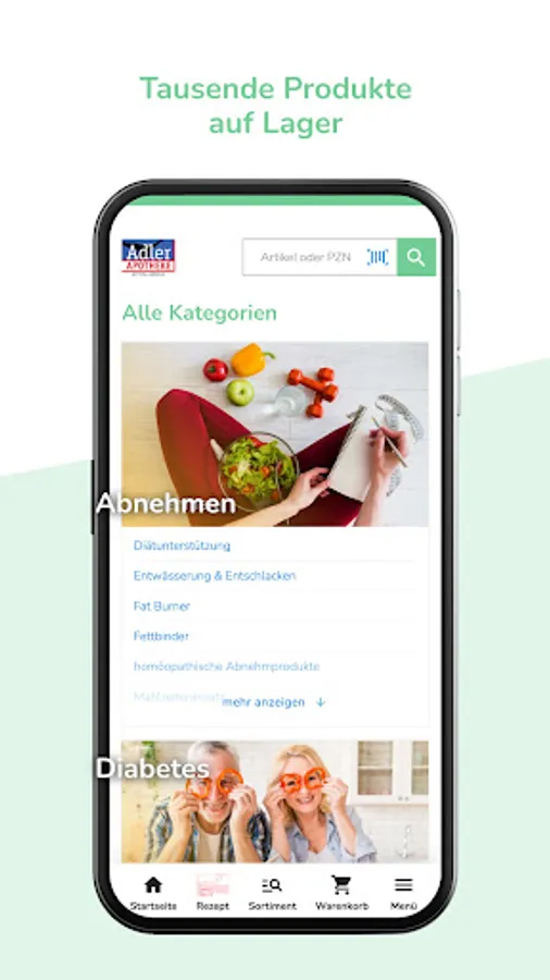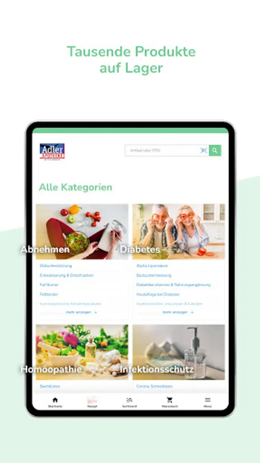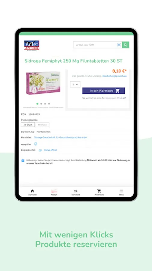 We offer you our entire range via the app. We will order products that are not immediately available for you and usually have them ready for collection by the next working day. We would be happy to deliver your order directly to your home by courier service.