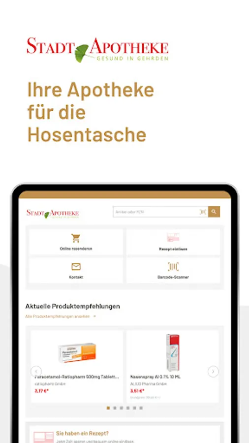 The Stadt-Apotheke Gehrden for your pocket: Order (e-)prescriptions and medicines easily online.
