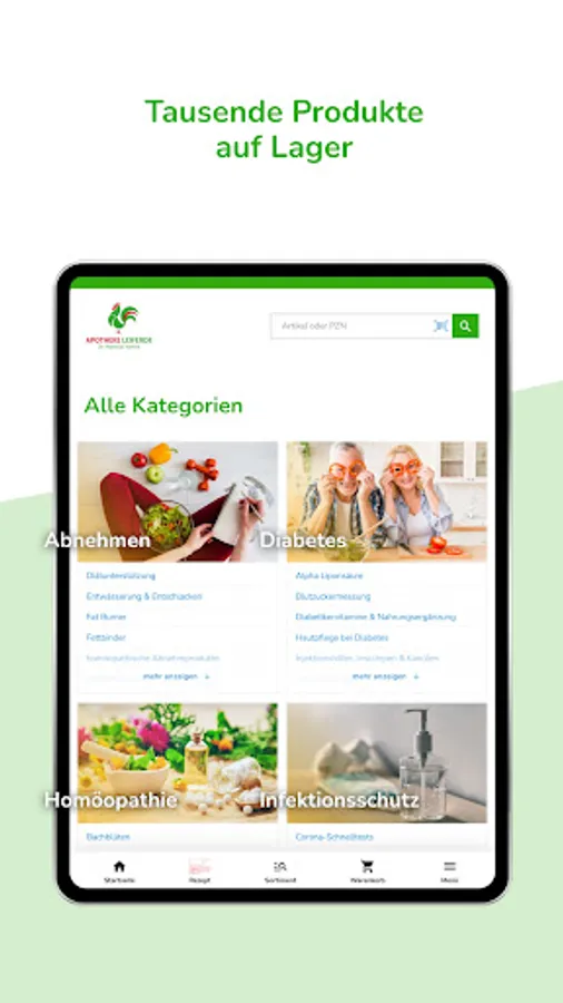 We offer you our entire range via the app. We will order products that are not immediately available for you and usually have them ready for collection by the next working day. We would be happy to deliver your order directly to your home by courier service.