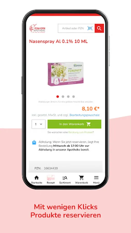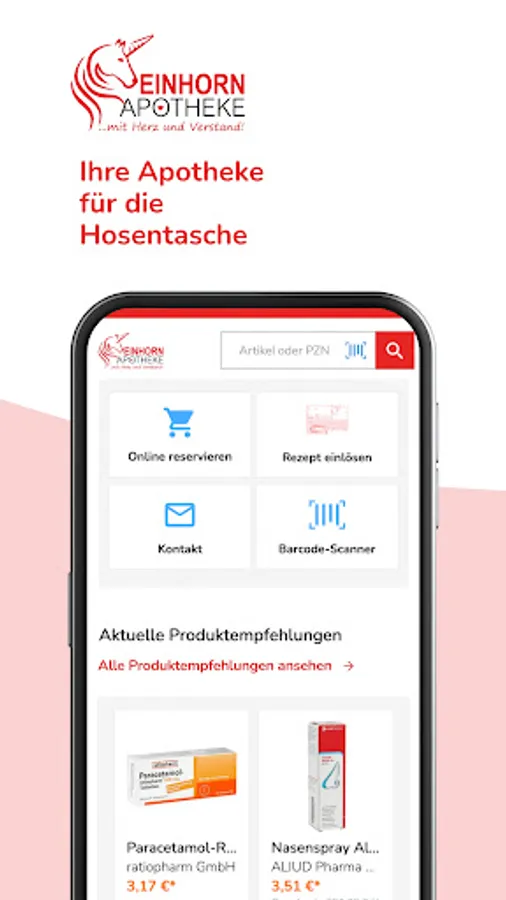 The Einhorn Apotheke Bockenem for your pocket: Order (e-)prescriptions and medicines easily online.
