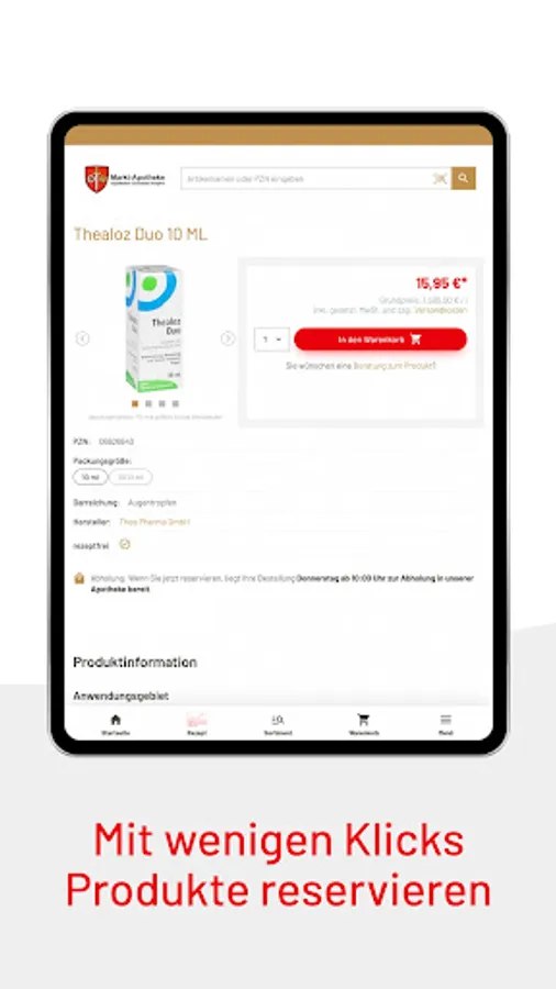 We offer you our entire range via the app. We will order products that are not immediately available for you and usually have them ready for collection by the next working day. We would be happy to deliver your order directly to your home by courier service.