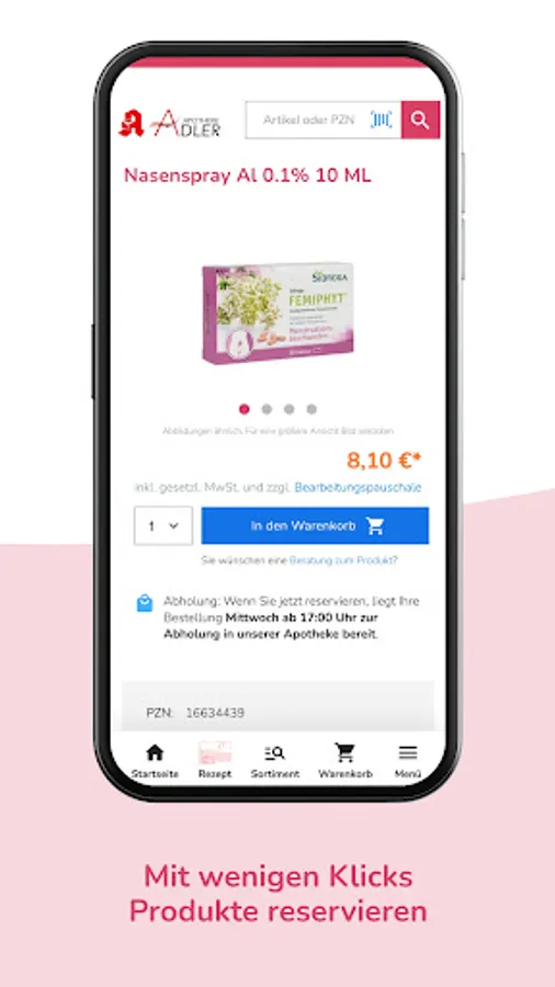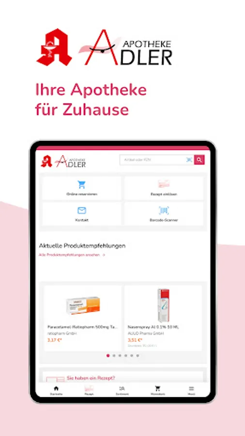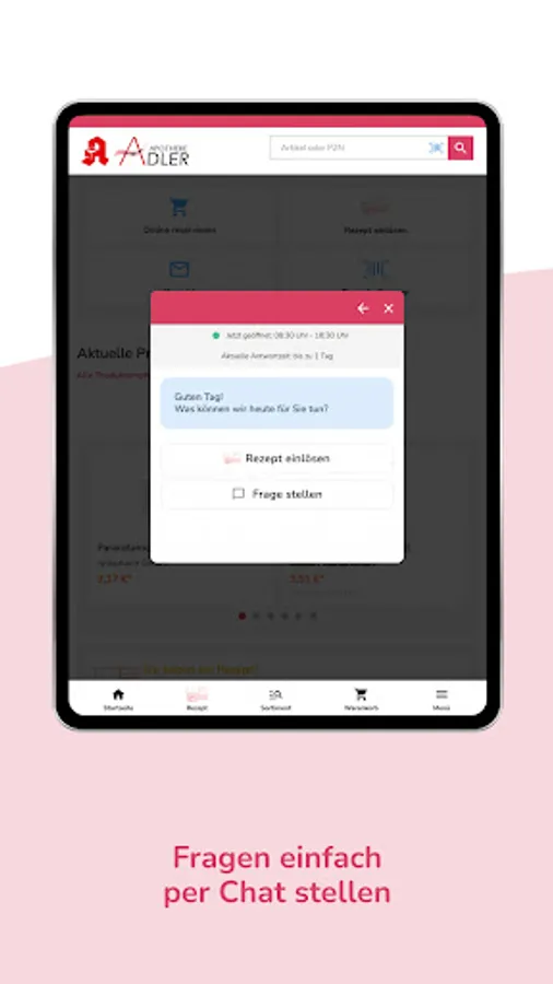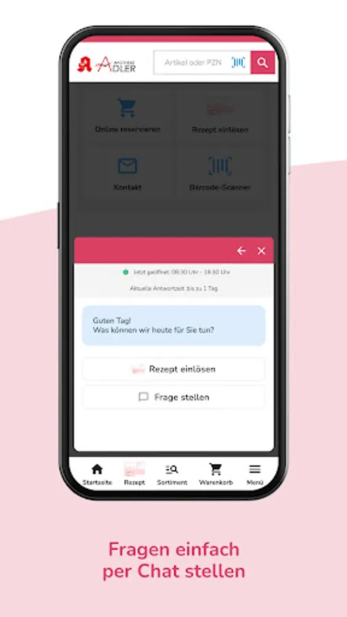 The ADLER-APOTHEKE Kuppenheim for your pocket: simply order (e-)prescriptions and medicines online.