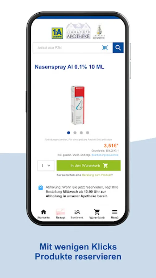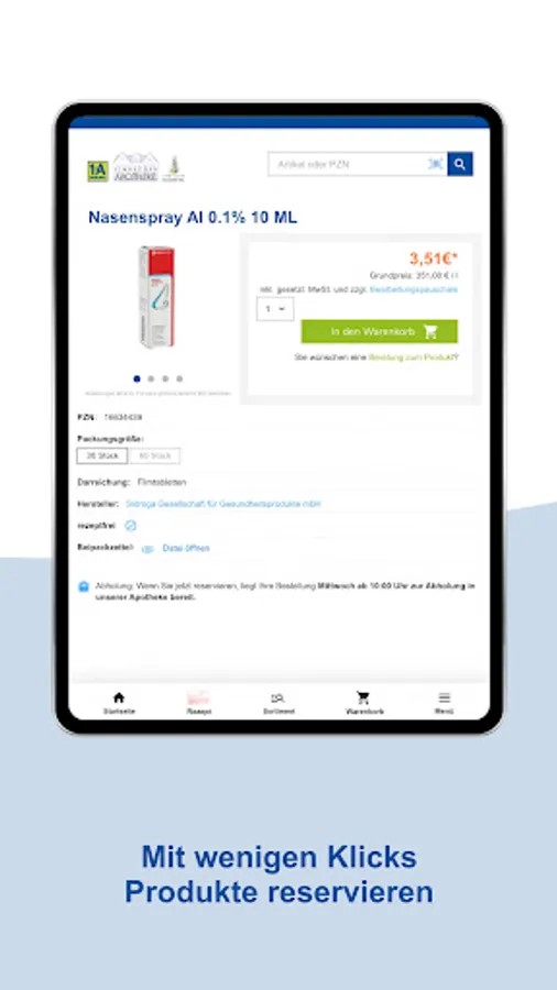 Please note that we are obliged to provide pharmaceutical advice for products that are sold in pharmacies. The consultation takes place either when you pick it up at our pharmacy, when it is handed over to you at home or by telephone.