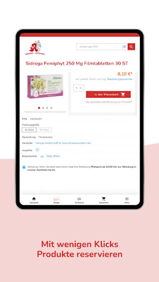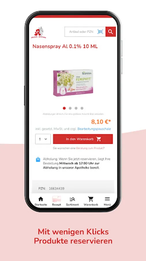 Please note that we are obliged to provide pharmaceutical advice for products that are sold in pharmacies. The consultation takes place either when you pick it up at our pharmacy, when it is handed over to you at home or by telephone.