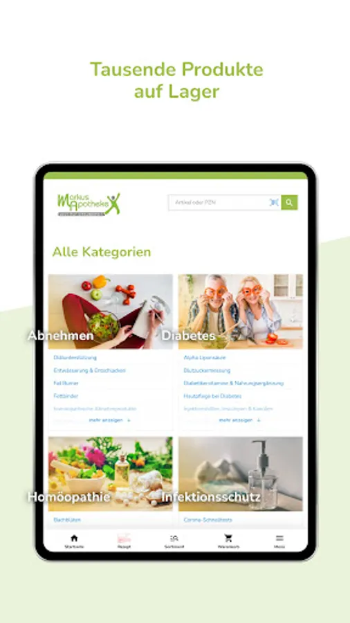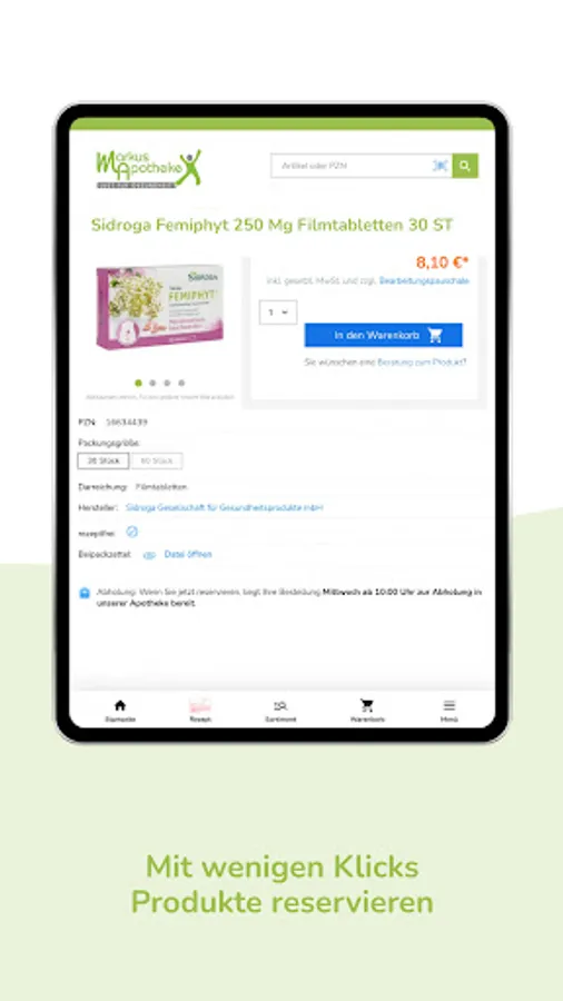 We offer you our entire range via the app. We will order products that are not immediately available for you and usually have them ready for collection by the next working day. We would be happy to deliver your order directly to your home by courier service.