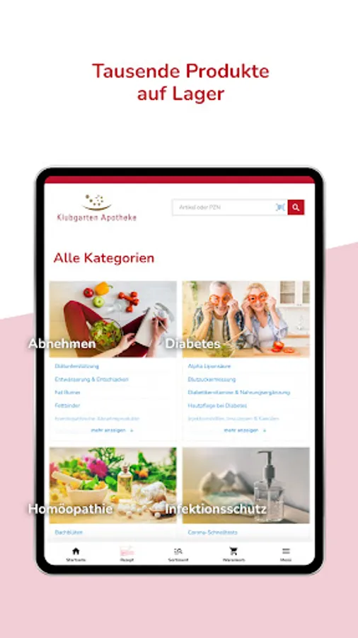 We offer you our entire range via the app. We will order products that are not immediately available for you and usually have them ready for collection by the next working day. We would be happy to deliver your order directly to your home by courier service.