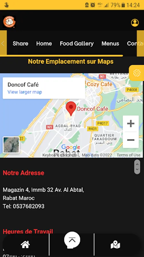 Application that presents the services of Doncof Café and its menus, Doncof Café a restaurant-type café that offers a lot of varied and delicious quick menu in the middle of Agdal in Rabat