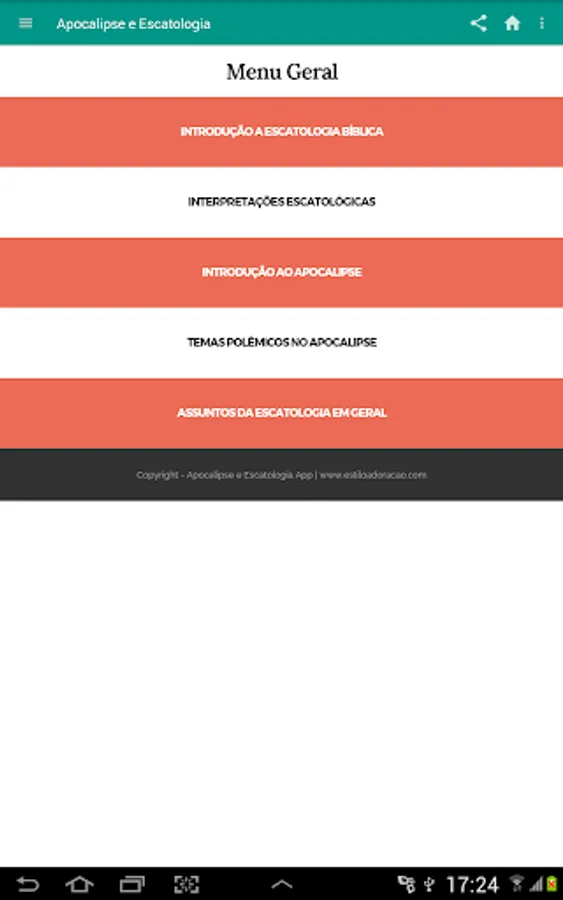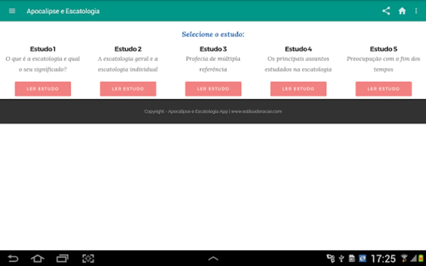 In this application you will have access to a number of studies undertaken in a simple and objective way for you to understand the book to Revelation and the major eschatological themes. Some of the topics you will study: