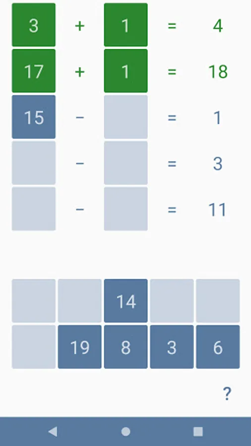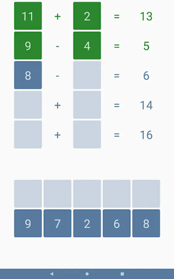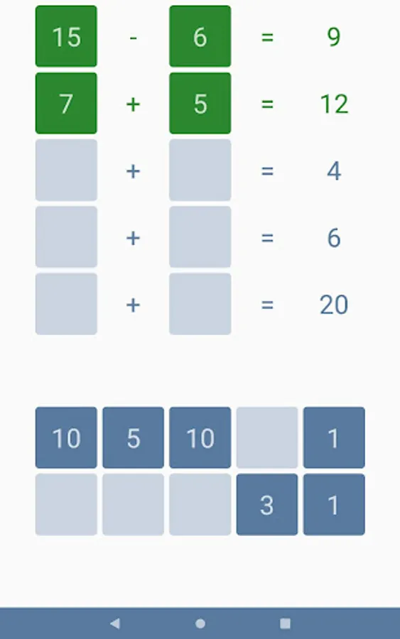 - Exercises for correct sentence composition (moving the numbers to get the right equality)
