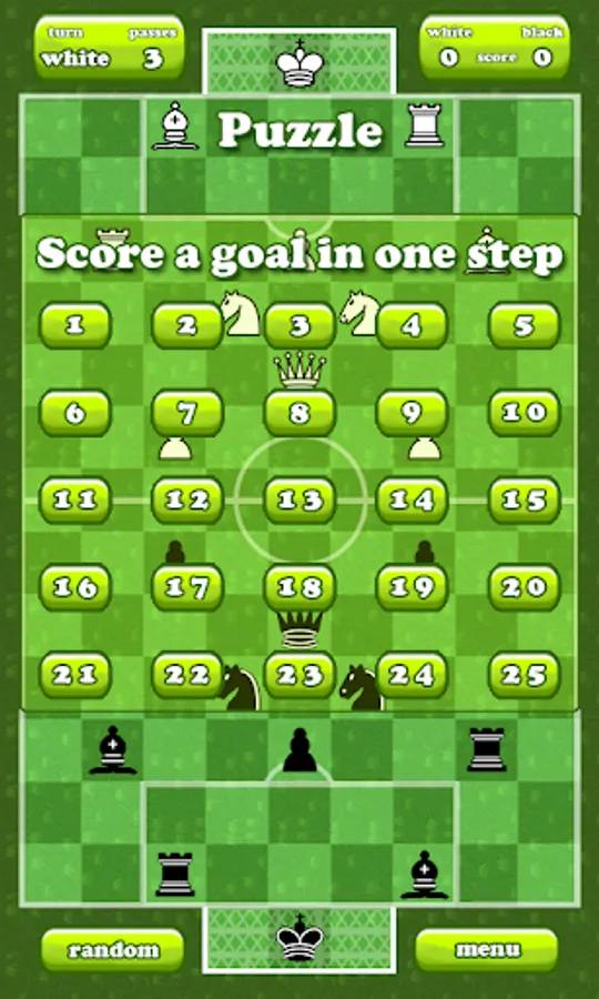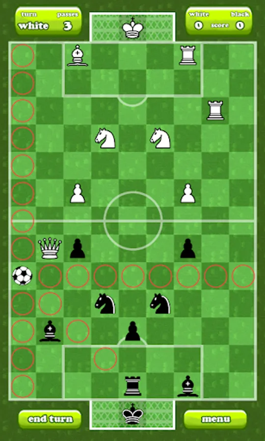 - To shoot or pass the ball, place one figure beside it. The ball can now move like the figure. (If there is the queen and a knight near the ball, the ball can move like the queen and like the knight)