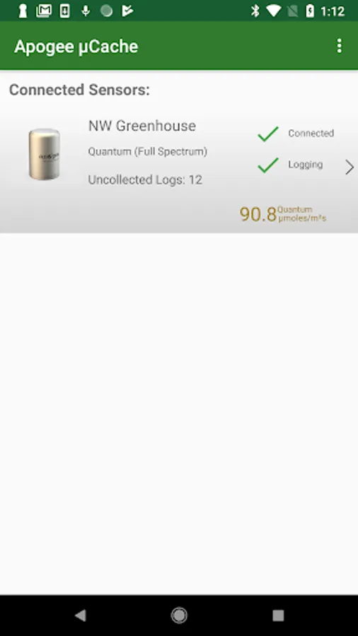 Apogee Connect interfaces with a miniature data-logger created by Apogee Instruments via Bluetooth Low-Energy. This miniature data-logger, called a microCache, is able to collect data from many of Apogee Instrument's analog sensors.