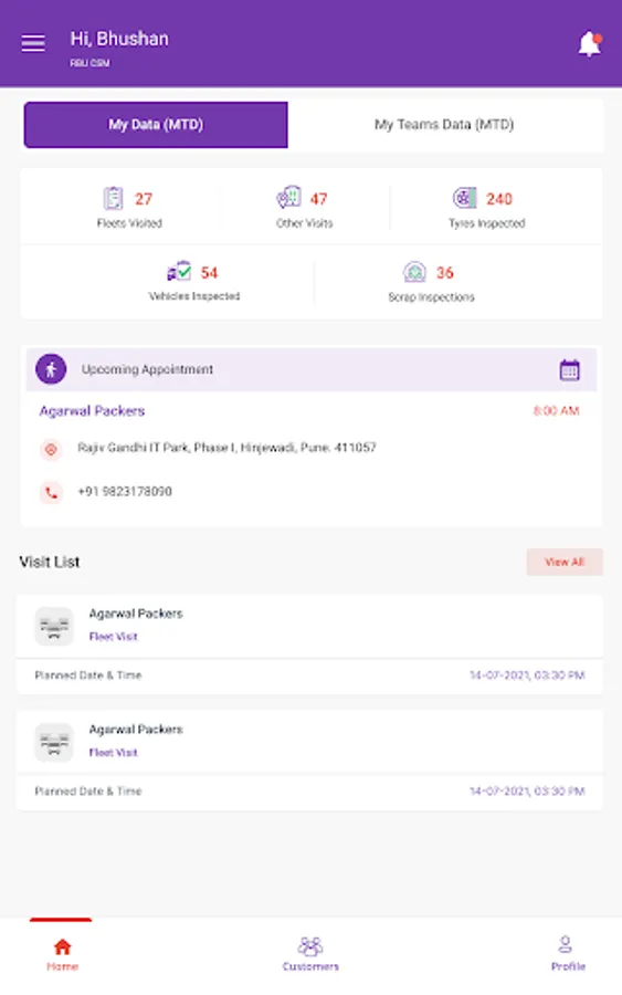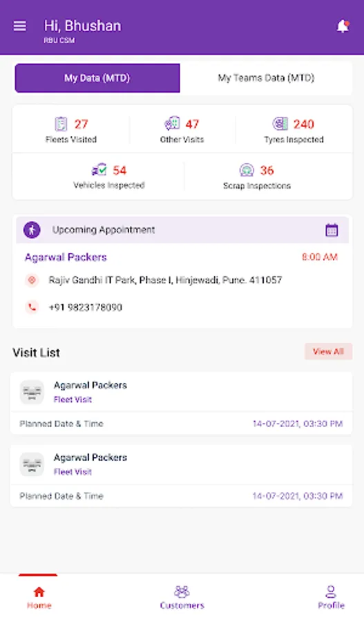 The app will be utilized by Fleet and CS team for converting fleet customers account into our fold directly impacting sales and comparing CPKM performance vis a vis competition. The app will have integration with Bluetooth NSD and Pressure gauges. Thailand team would be building entire customer master and responsiveness to end customer would increase.
