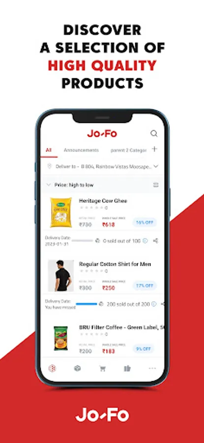 JoFo β Indiaβs first online discounted shopping app where you benefit from offers and deals by buying products in groups with other people from your community. Share deals with others so you can get wholesale prices without having to order large bulk orders. Currently, JoFo is operating only in Hyderabad*.