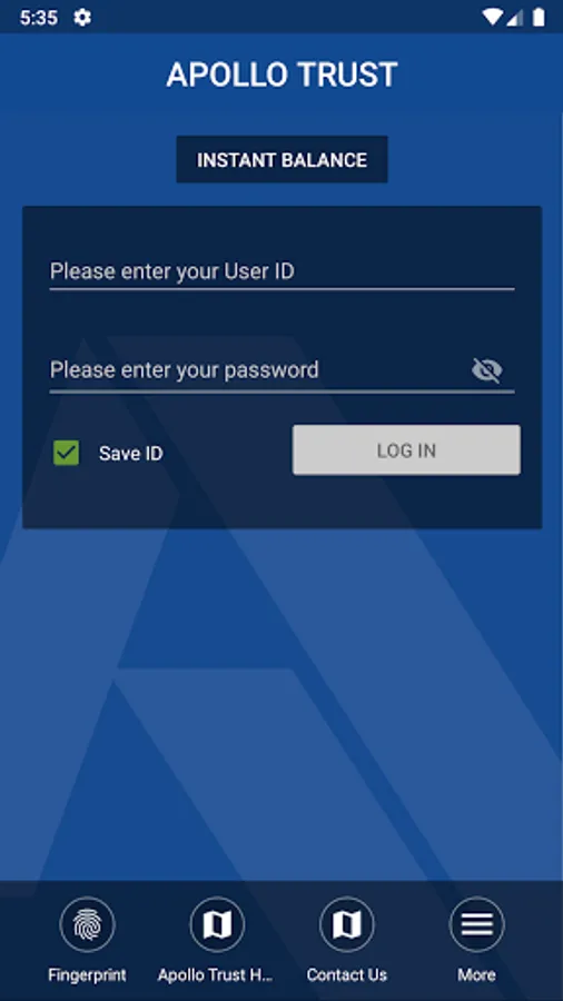 Apollo Trust Company allows you to securely access your accounts from your mobile device. To get started, just enroll in the Apollo Trust Online Banking program by visiting www.apollotrust.com . You can use the same access ID and Password in order to start using the online app.