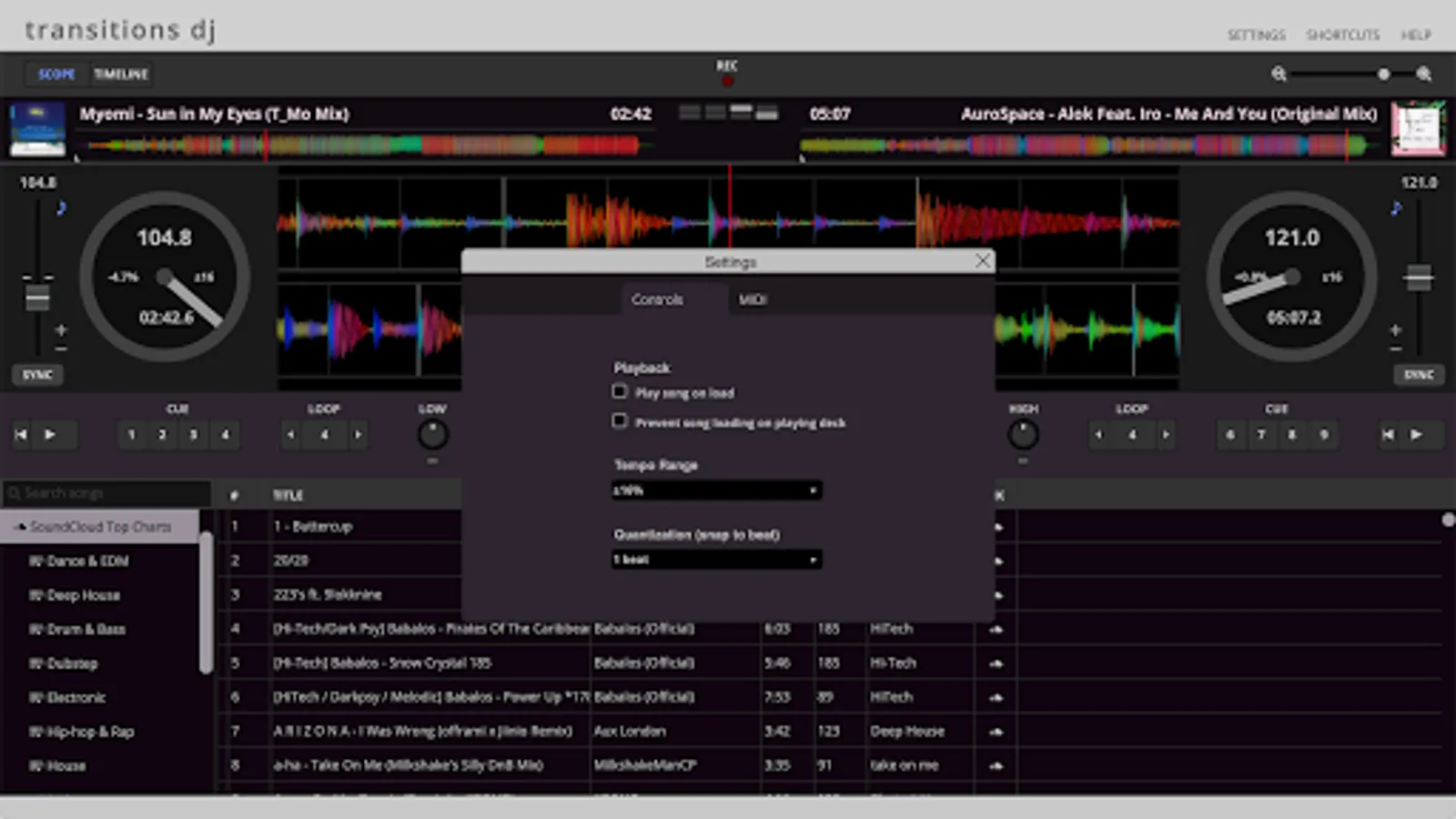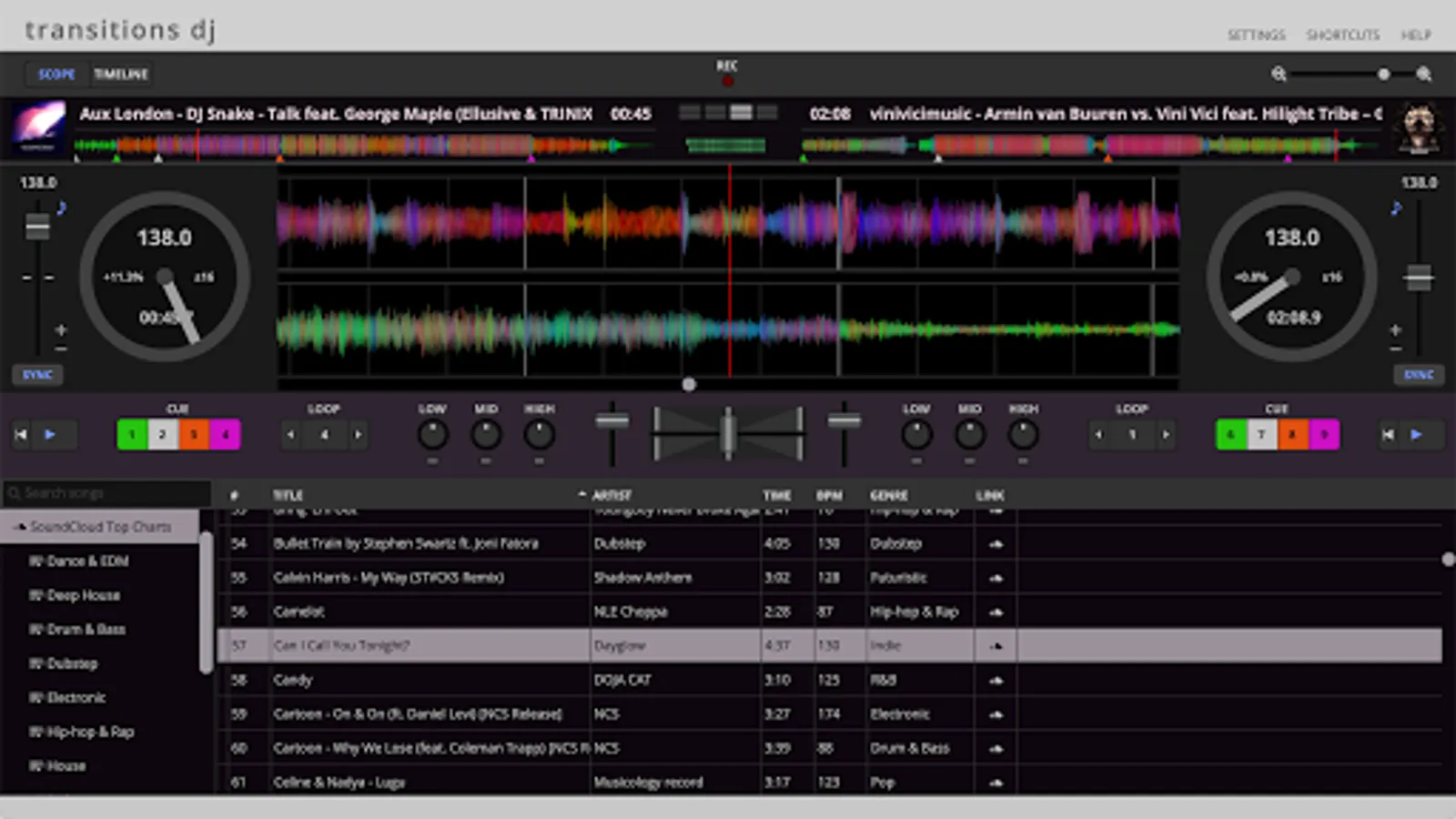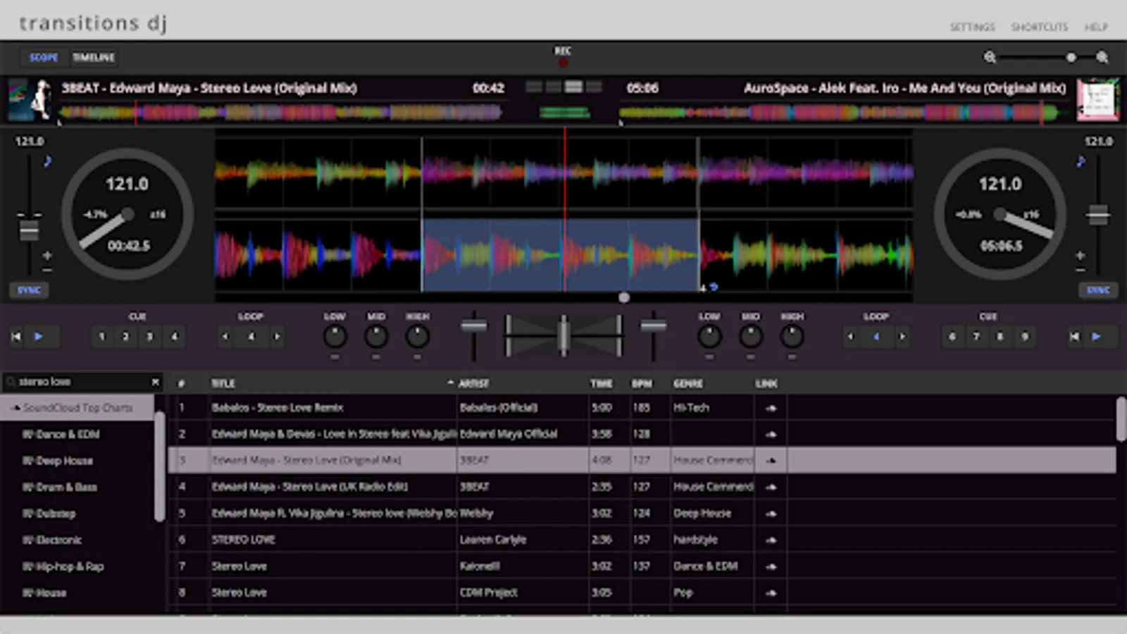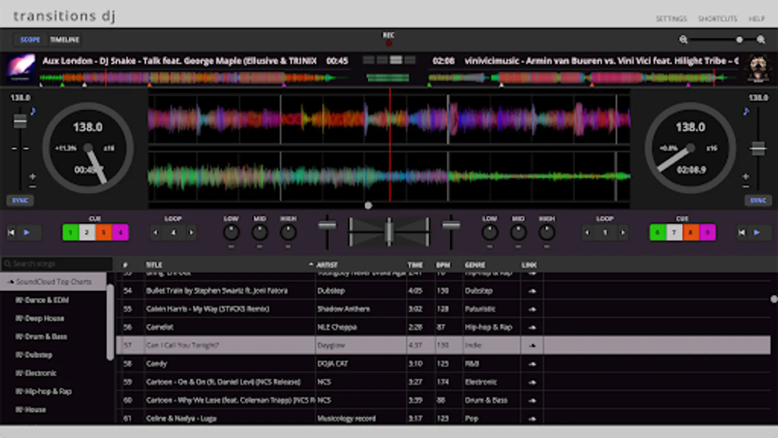 Transitions DJ is an ad-free DJ mixer with all the tools to DJ your next party or record a mix of your favorite tunes. For your music needs, Transitions DJ integrates with your local music library and SoundCloud's online catalog. Smooth-as-butter controls and navigation will have you blending songs precisely and seamlessly for that perfect mix.