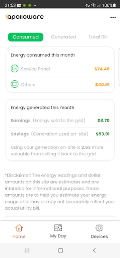 Monitor real-time energy consumption with easy to use mobile app.