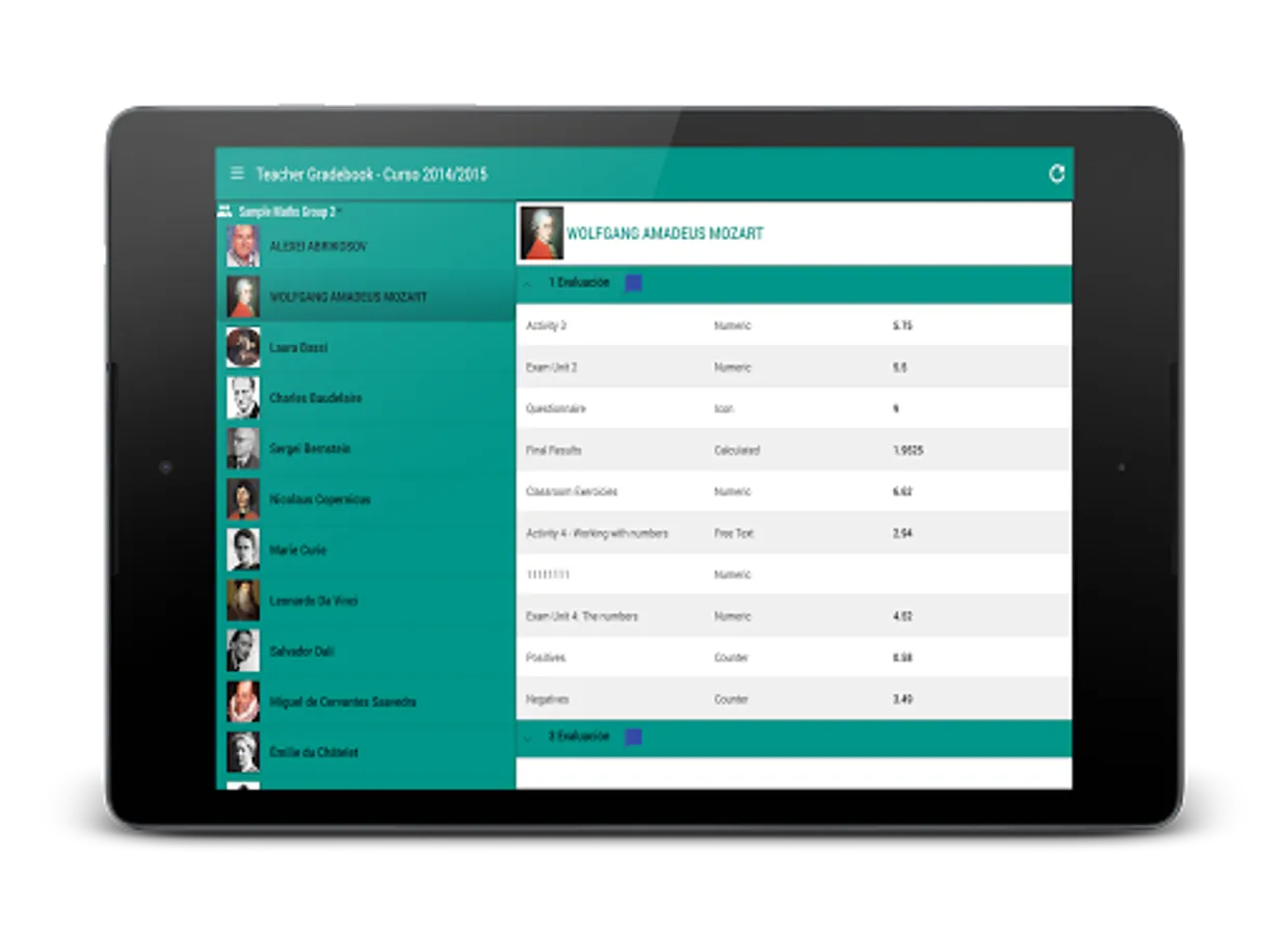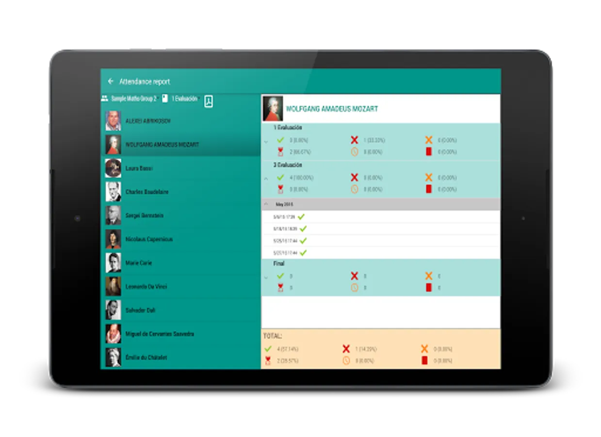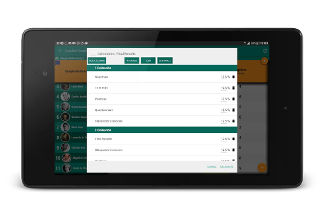 Keep your students and theit marks organized and auto calculate the final score.