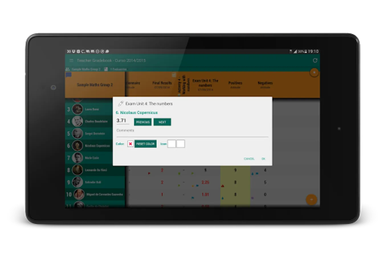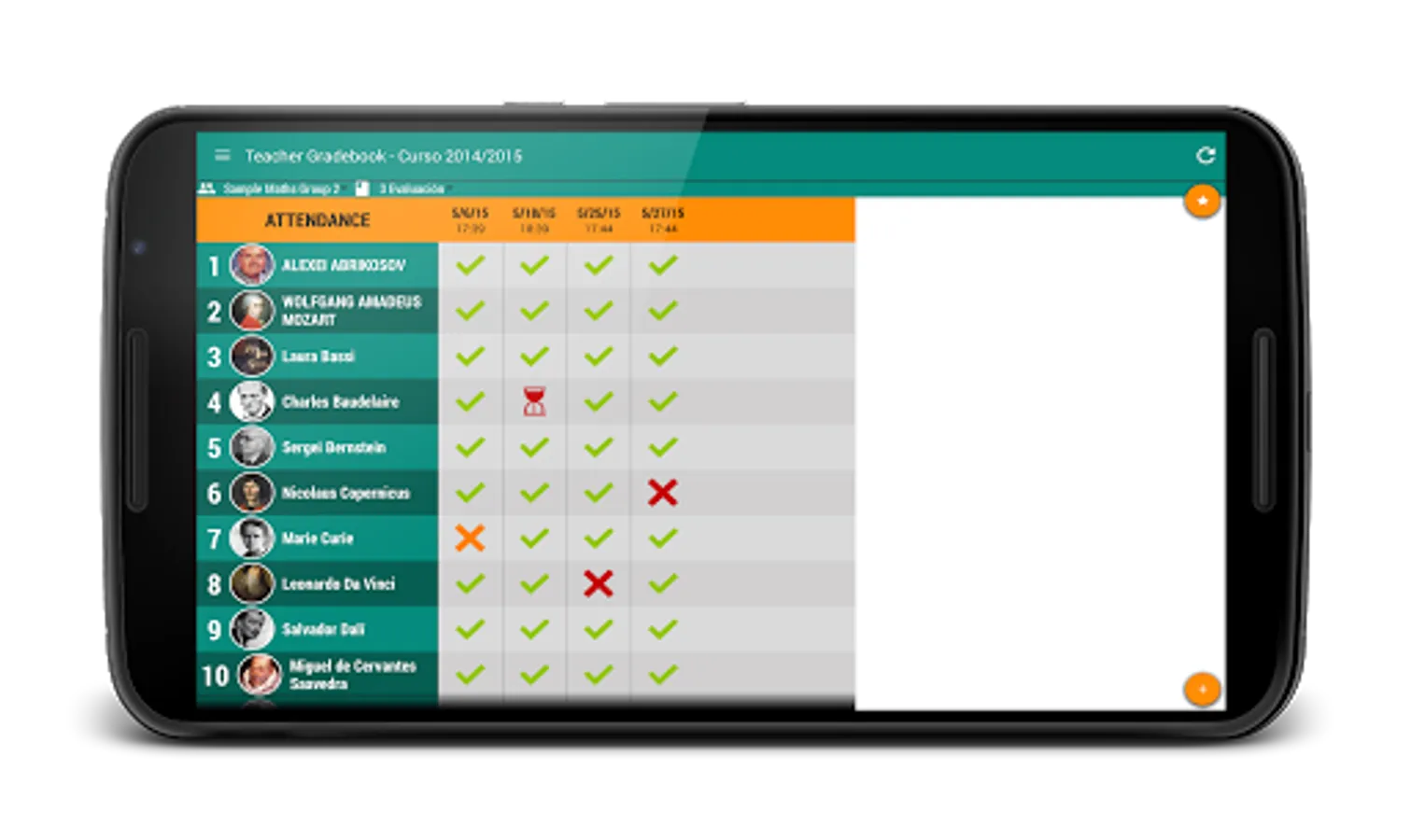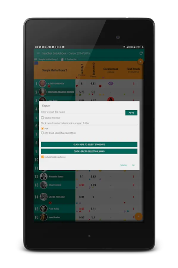 Keep your students and theit marks organized and auto calculate the final score.
