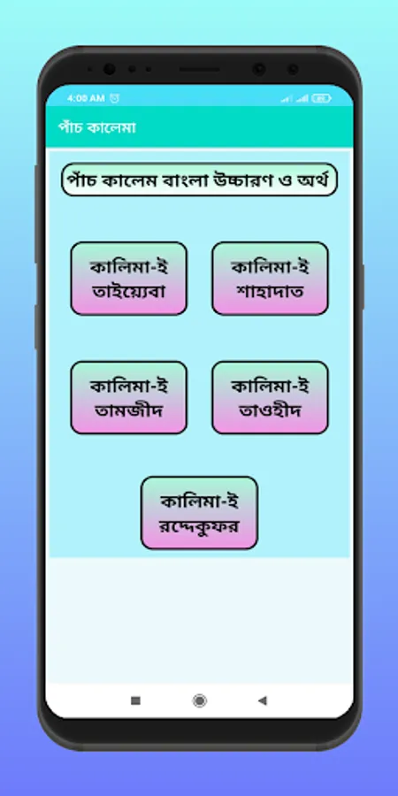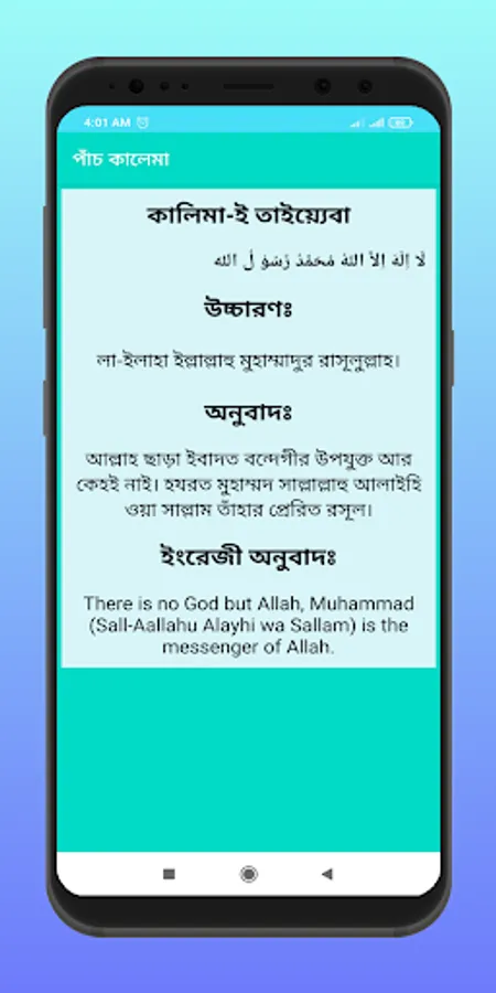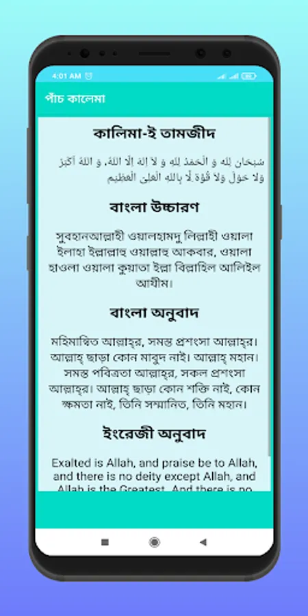 আমরা অনেকে আছি যারা এখনো সঠিক ভাবে কালেমা পড়তে পারি না তাদের জন্য আমাদের এই অ্যাপটি এই অ্যাপটিতে আছে বাংলা উচ্চারণ ও অর্থ সহ ৫ কালেমা । কালেম্র গুরুত্ব অনেক ফযিলত ও অনেক।