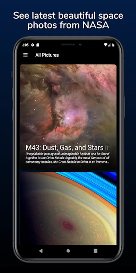 See beautiful and amazing space pictures and read about them with a sleek and smooth UI. This app is based on NASA's Astronomy Picture of the Day.