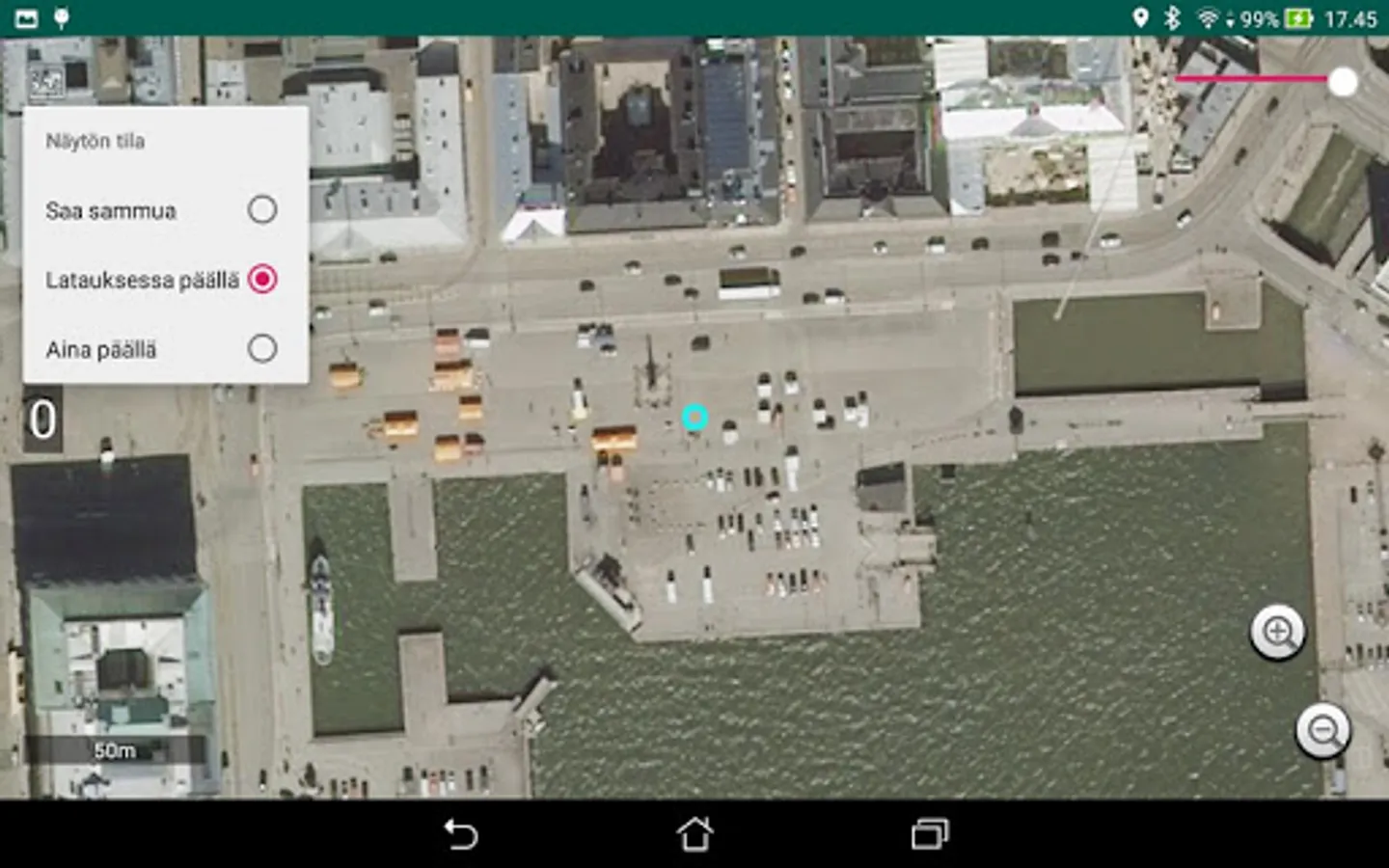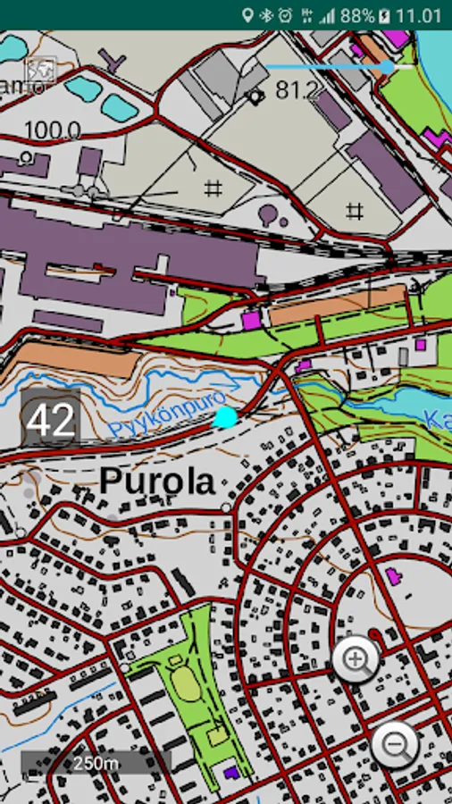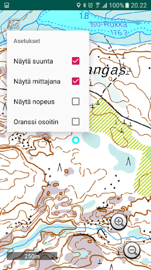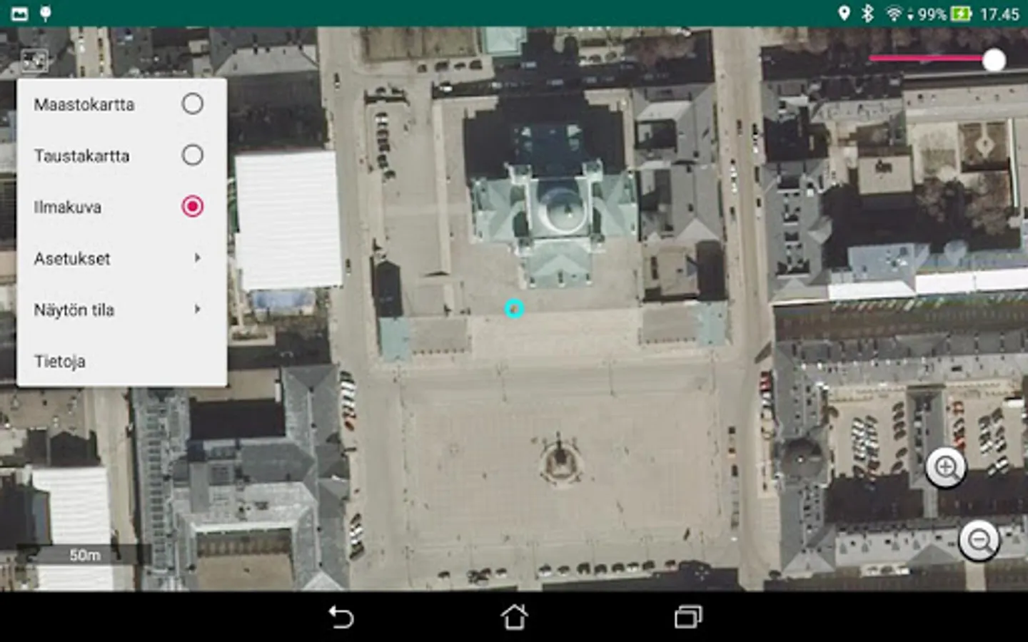 Free application for tracking your own location, saving places and browsing the map in Finland. You can choose from three map options to suit your situation. In addition, you can specify the address of the map server you want. The settings of the application are easy to adapt to the situation. A clear user interface works well in vehicle use, for example.