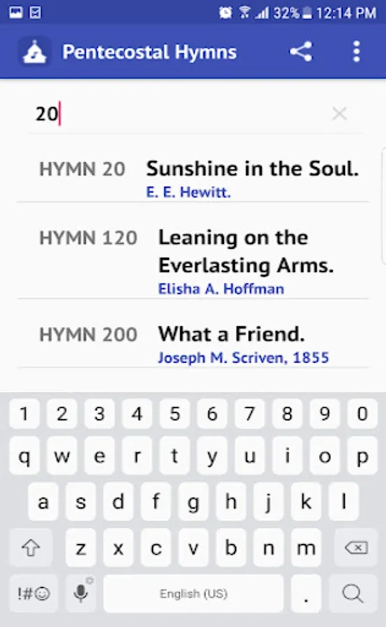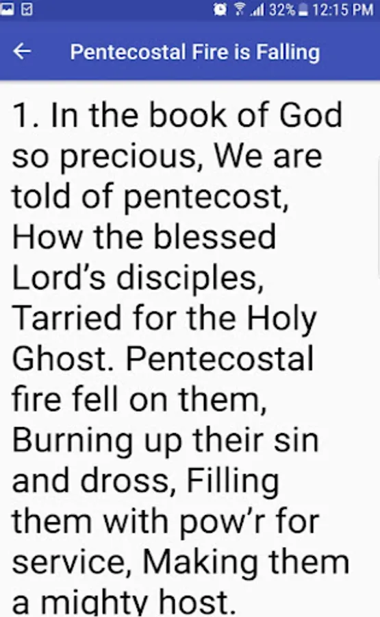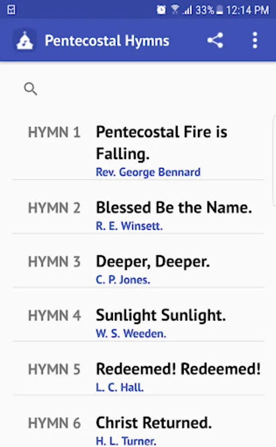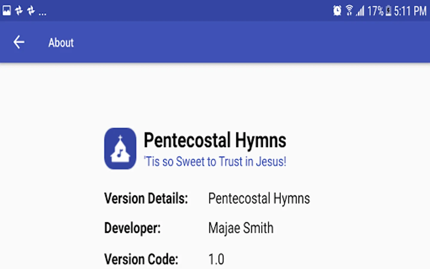 This app contains the standard hymns for Pentecostal Apostolic Church; consisting of a total of 303 Hymns where you can search by Hymn number or by title.