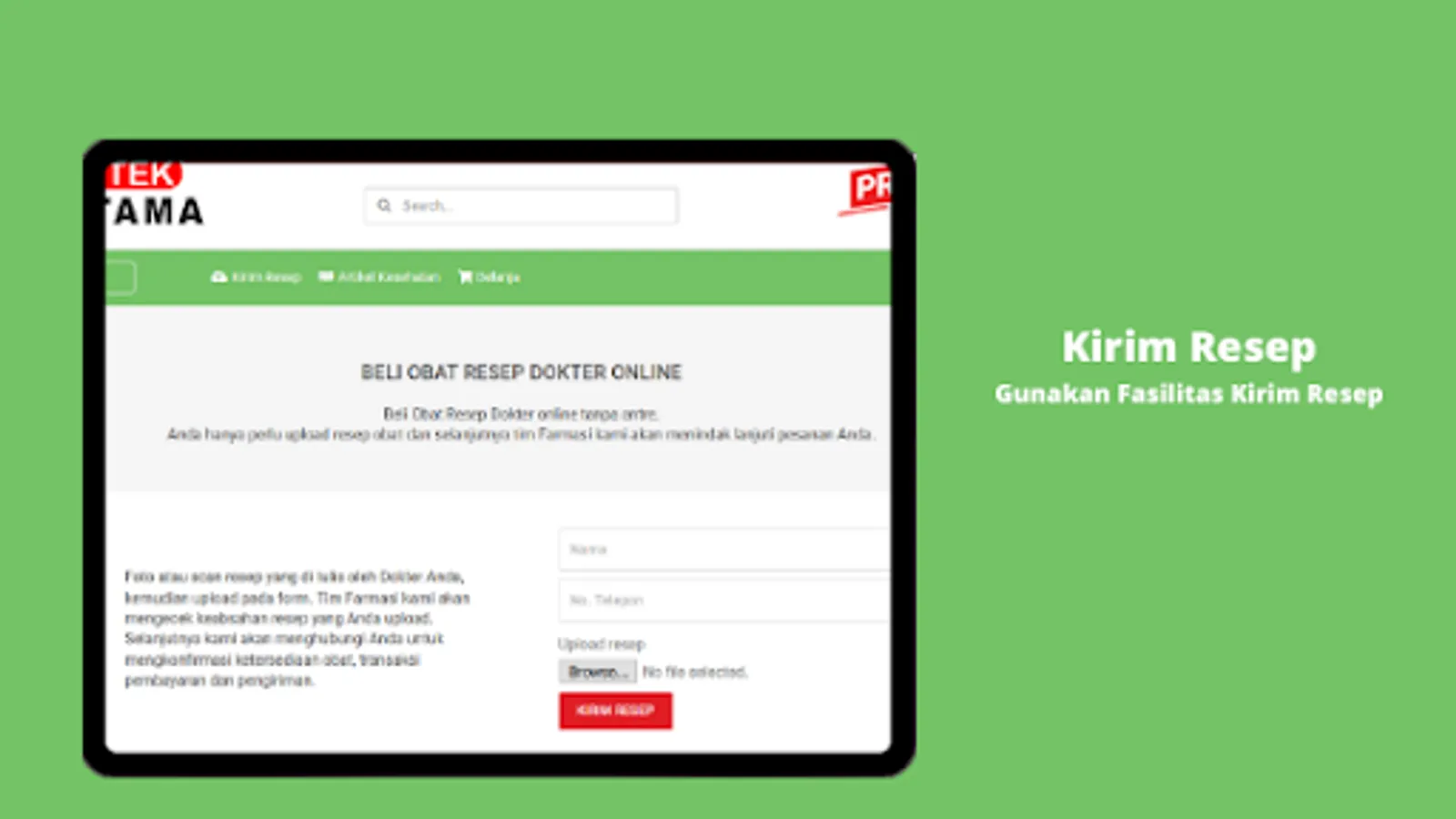 Apotekpratama.com easily. Only by uploading the doctor's prescription that you provide, our pharmacist will validate the prescription you submitted. In just 5 minutes, you will immediately receive a confirmation of the drug order