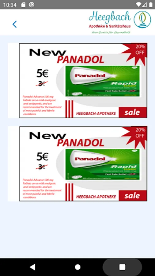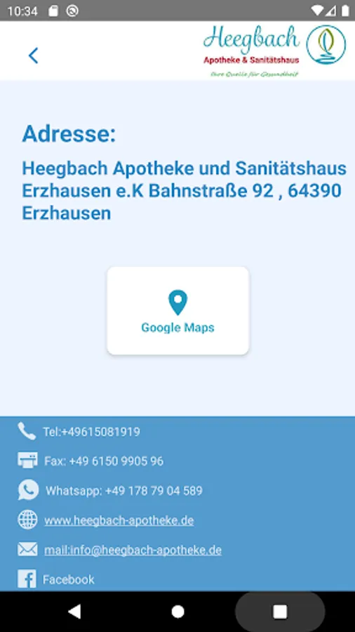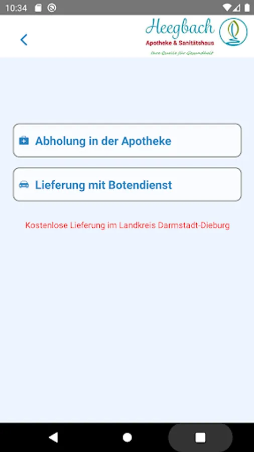 Mit der Heegbach-Apotheke App haben Sie “ Apotheke in de Hosentasche”. Mit unser App Vermeiden Sie Wartezeiten und bestellen Sie direkt in Apotheke vor. Nachdem Sie unser App installiert haben, können Sie eure Rezepten fotogerafieren und an uns schicken und Ihre bestellung vor Ort abholen.