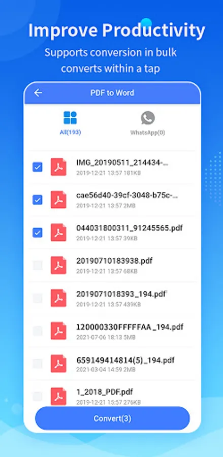 The app supports converting PDF documents in batch, which is quite time saving . Also, it allows you to compress PDF, which saves your phone storage, and makes transferring documents much faster and easier.