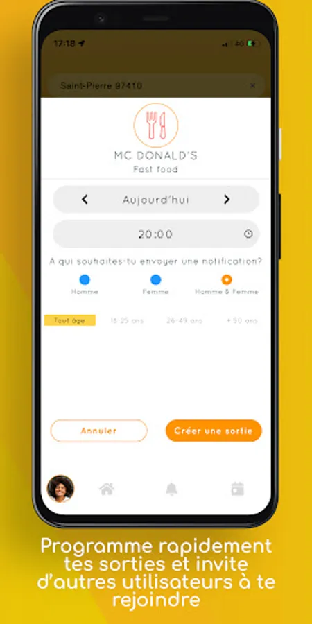 - Targets a user profile (gender, age..), sends and receives instant notifications