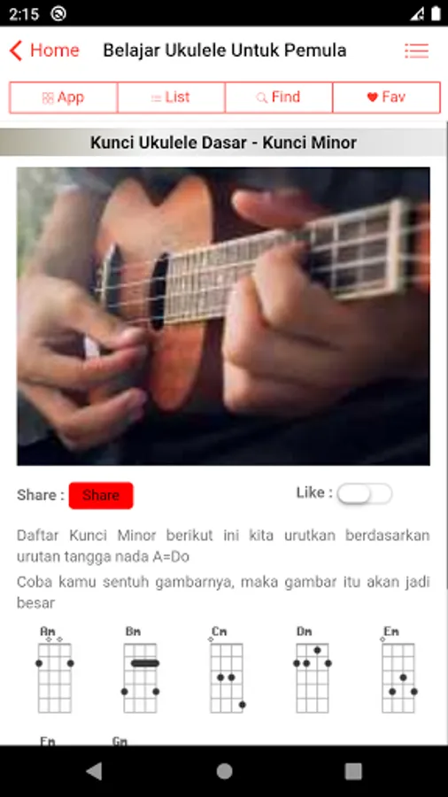 - You can use the like feature if you want to save ukulele learning information for beginners that you like, so you don't have to search again.