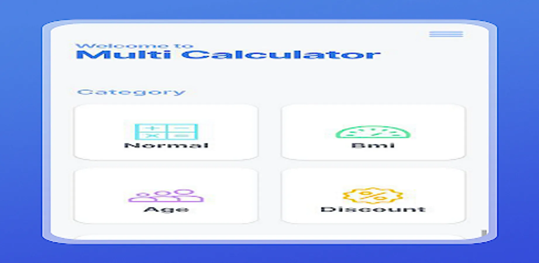 Et bien d'autres encore. L'application Multi Calculator est conçue pour être conviviale, offrant une interface simple et intuitive qui facilite l'utilisation de chaque calculatrice.