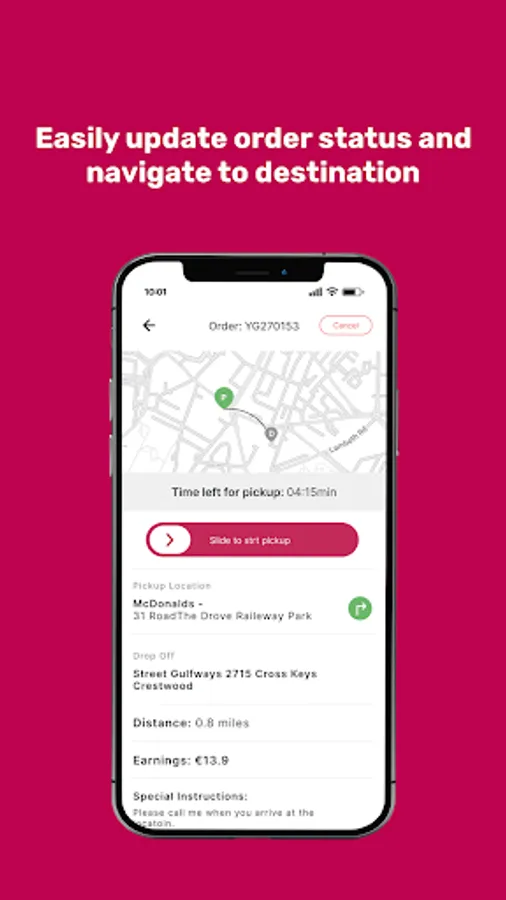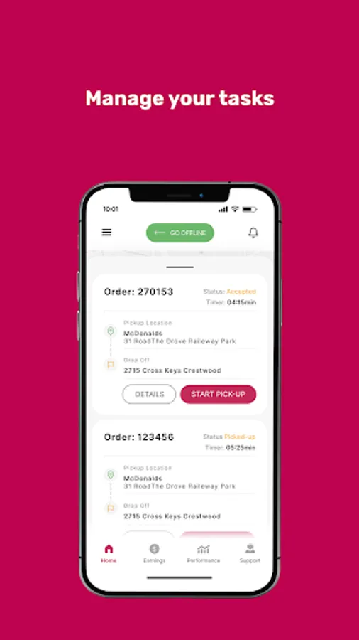 Use this app to view and manage your current and upcoming delivery tasks, navigate around the city, track your earnings and reach out to our friendly support team.