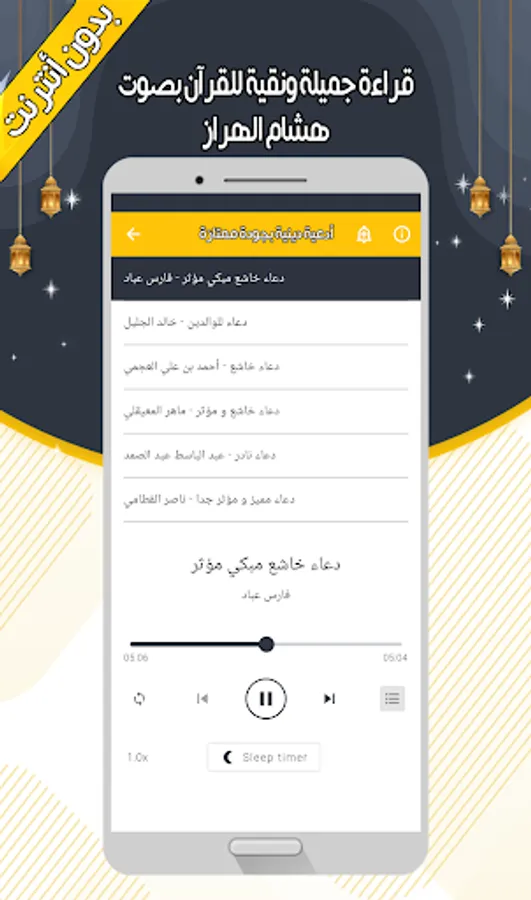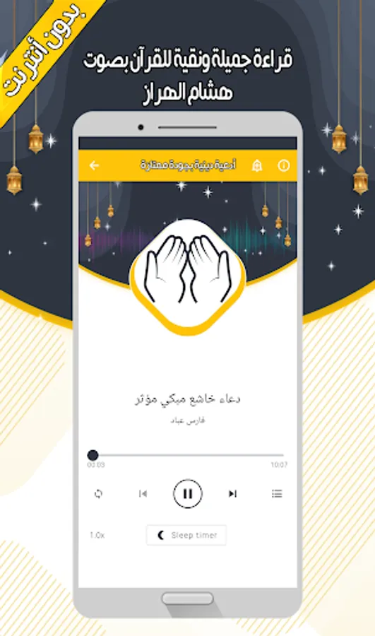 After downloading the application, you can listen to the surahs of the Noble Qur’an with the voice of Hisham Al-Haraz for free, anytime and anywhere with ease.