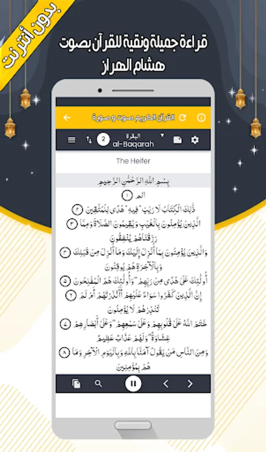 The application of the Noble Qur’an with the voice of Hisham Al-Haraz allows you to hear all the surahs of the Holy Qur’an through your mobile phone or tablet with ease and ease through one program that contains all the surahs of the Holy Qur’an. for Android phones. In order to enjoy reciting the Noble Qur’an with the voice of Sheikh Hisham Al-Haraz wherever you want.