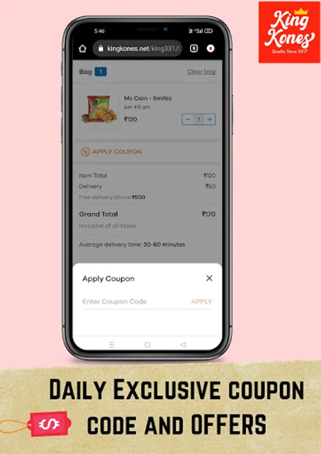 Full Description: King Kones; the name synonymous with quality products now brings to the people of Manipur a state of the art App for Home delivery of any frozen items including ice cream with options of Cash on Delivery and host of online payment options.