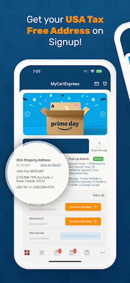 Whether you are shopping online or scheduling a delivery, use your MyCart Express™ Shipping address (given on signup) to forward your packages to your preferred branch for pickup in Jamaica.