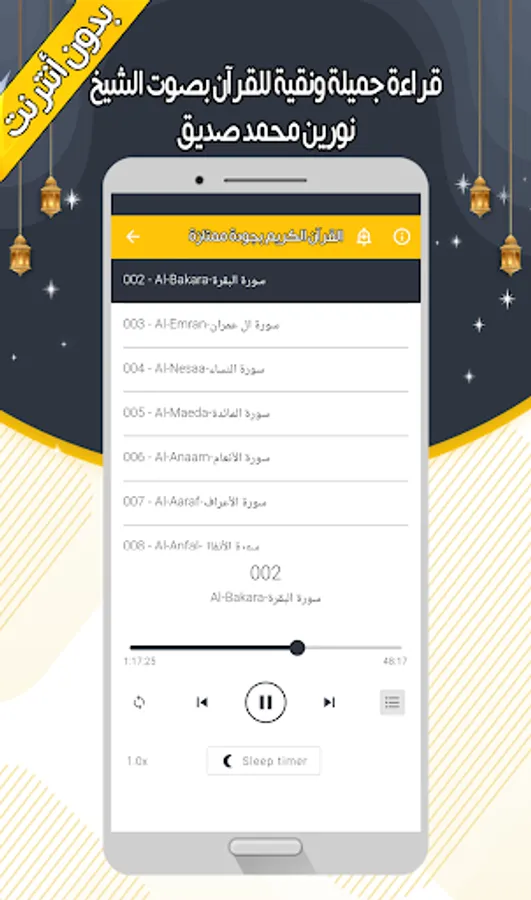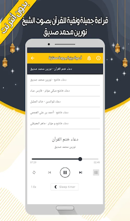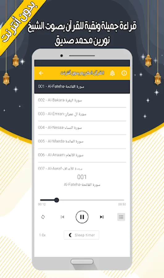 The application of the Noble Qur’an with the voice of Noreen Muhammad Siddiq allows you to hear all the surahs of the Noble Qur’an through your mobile phone or tablet with ease and ease through one program that contains all the surahs of the Noble Qur’an, and the Noreen Muhammad Siddiq application without the net is also free and available On the store for Android phones. In order to enjoy reciting the Noble Qur’an with the voice of Sheikh Noreen Muhammad Siddiq wherever you want.