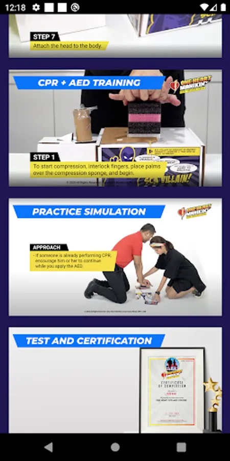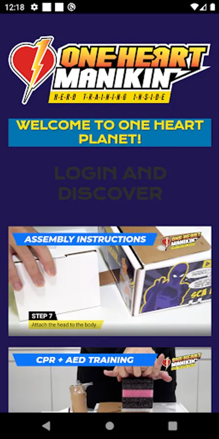 The One Heart Planet CPR AED app includes simple, step-by-step video demo and instructions aligned with the latest AHA and SRFAC guidelines for performing CPR and using the AED. Includes the One Heart SimulAED that turns your phone into a powerful AED simulator! Developed to be used along with the One Heart Manikin Kit, which includes a lightweight manikin and AED training accessories.