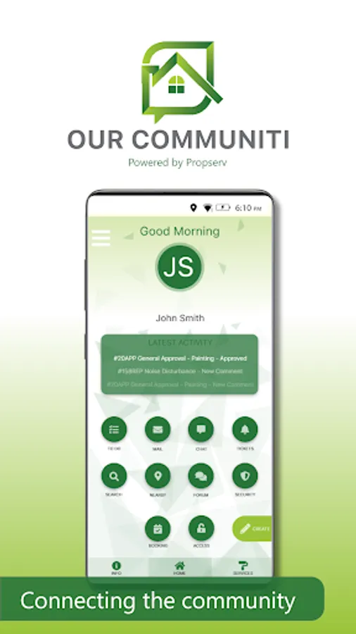 Propserv is proud to present Our Communiti. This app brings security, simplicity and convenience to community living. Our mobile application provides an all in one platform for enabling management companies, residential as well as commercial management to communicate with their residents and for residents to communicate with management.