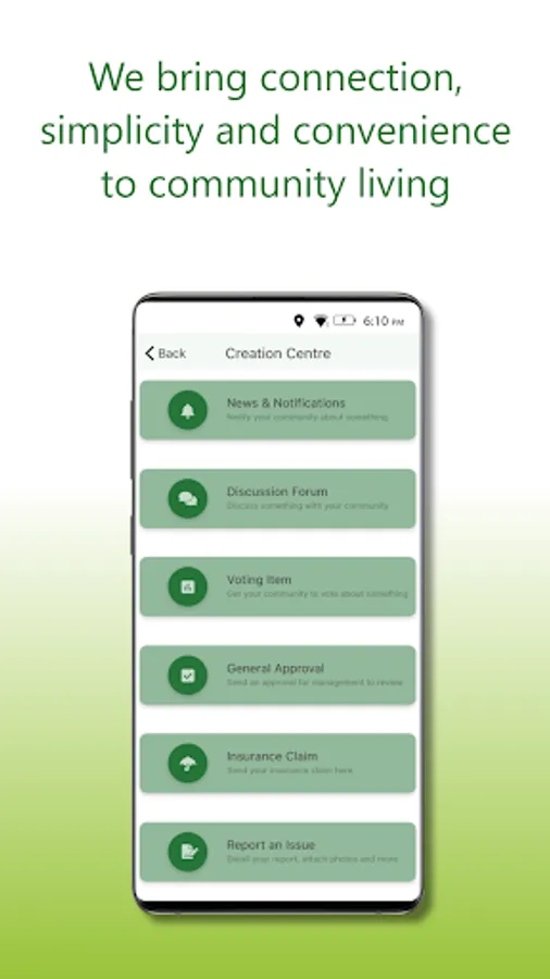 Management can easily keep its community engaged by creating once-off or scheduled notifications, a voting poll or getting their opinion in a discussion forum.